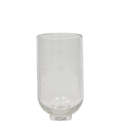 The Kuki Vase in glass features bubble splashes that add a touch of whimsy to its minimalist design. Its sleek form adds a playful element to its timeless aesthetic, blending functionality with elegance. Perfect for showcasing flowers or as a standalone decorative piece. Being mouthblown, each vase will vary in size, adding to its unique charm. Measures Ø10cm x H17cm.
