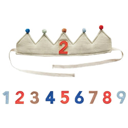 Celebrate birthdays in style with this Magic Birthday Crown. Made from 100% organic cotton, it's sustainable and charming. With changeable numbers from 1 to 9 and a flexible fit, it's perfect for any celebration, year after year. Let the magic begin! Measures H9cm x L34cm x W10.5cm.