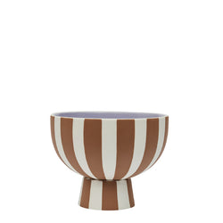 The Toppu Bowl features a hand-painted striped design with a splash of colours. Perfect for serving snacks, fruits or small meals, it adds a bold, modern touch to any table. The hand-painted finish ensures each bowl is unique, and its sculptural form makes it an eye-catching piece in any room. Measures Ø12cm x H10cm.
