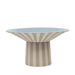 The Toppu Centerpiece is a hand-painted, sculptural piece that makes a bold statement on any table. Featuring vibrant stripes, it is perfect for serving snacks or organizing small items. It also serves as a unique art piece. Measures Ø30cm x H17cm.