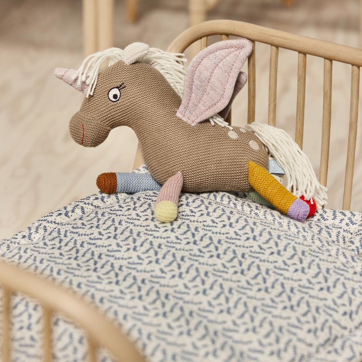 Ummi Unicorn, the imaginative companion, is crafted from 100% Oeko-Tex cotton and filled with 100% recycled polyester. Ummi adds a touch of magic to playtime, ensuring comfort and endless cuddles. Measures H23cm x L20cm.