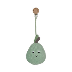 The Yummy Pear Pram Clip is a cute accessory crafted from knitted OEKO-TEX cotton. Perfect for adding a touch of charm to your baby's pram, this clip features the adorable Fun Foods illustrations. Measure H25cm x L7cm.