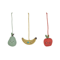 The Yummy Play Gym Toy features delightful illustrations of an apple, pear, and banana, bringing fun foods to playtime. Crafted from 100% cotton with a 100% polyester filling, these soft and engaging toys stimulate your baby's senses and encourage exploration. Perfect for adding a touch of whimsy to any play gym, these charming fruit-themed toys will keep your little one entertained and curious.