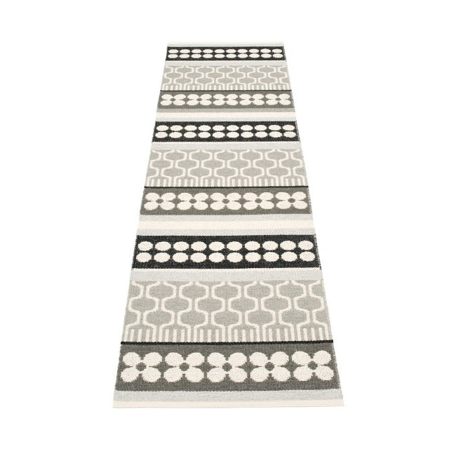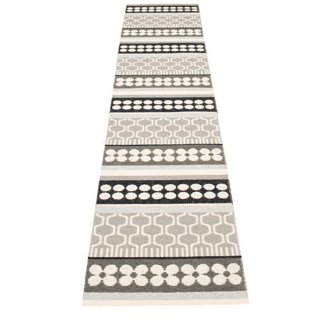 The ASTA rug in Warm Grey, Vanilla, Charcoal, and Black features a timeless striped pattern in a modern, neutral palette. Its reversible design offers two stylish looks in one, while durable, UV-resistant, and water-repellent materials make it ideal for both indoor and outdoor use. Hypoallergenic and machine washable, ASTA is soft underfoot yet built to withstand high-traffic and commercial settings. With Cfl-s1 fire classification and certified durability testing, it's a dependable choice for residential and boutique commercial environments.
