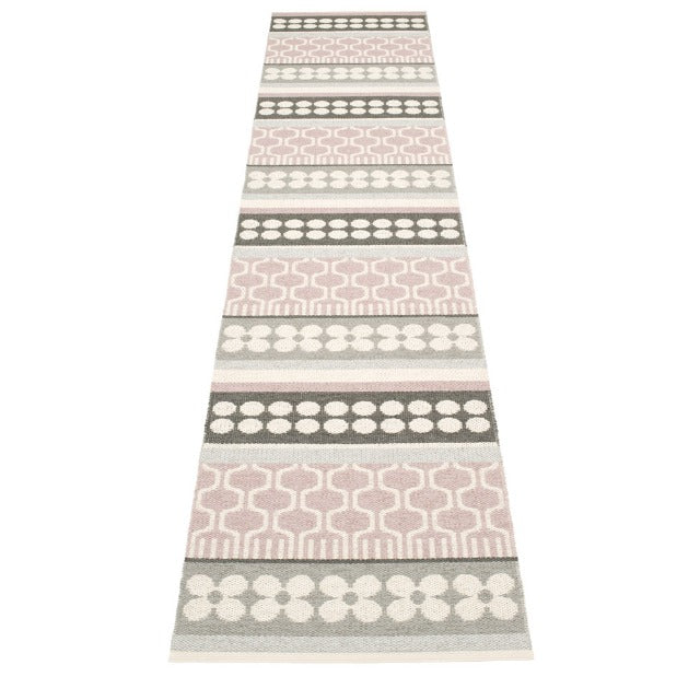 The ASTA rug in Rose, Vanilla, Charcoal, and Black brings soft, contemporary charm to a classic striped pattern—perfect for adding warmth and elegance to indoor or outdoor spaces. Its reversible design provides two complementary colourways for versatile styling, while the durable, UV-resistant, and water-repellent materials ensure long-lasting beauty and performance. Hypoallergenic, soft underfoot, and machine washable, ASTA is crafted to meet commercial standards with Cfl-s1 fire classification and certified wear resistance, making it an ideal choice for both residential and professional environments.