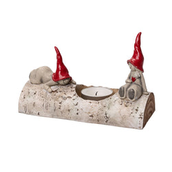 Infuse your holiday range with playful Scandinavian charm with the Naasgransgarden Peek-a-Boo Candleholder 15.5cm. Crafted to resemble a birch log, this whimsical candleholder features two delightful gnomes - one peeking cheekily from beside the log and the other sitting sweetly with a heart in hand.