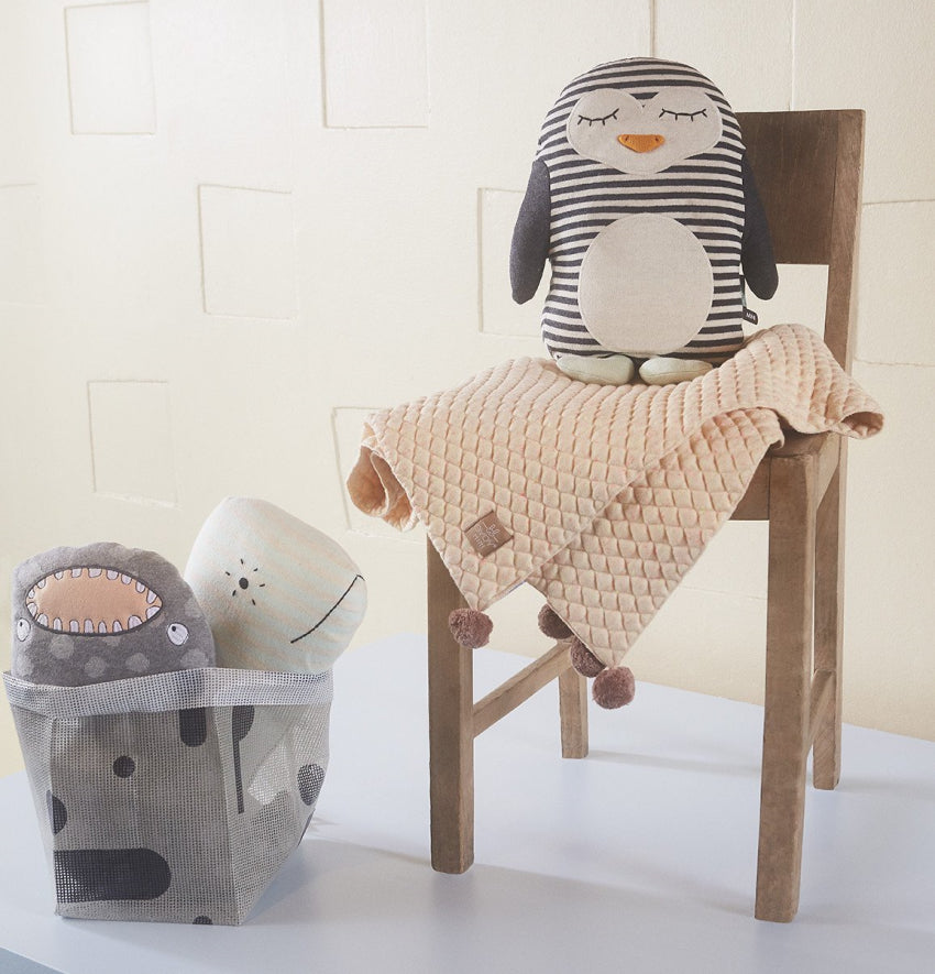 Penguin Pingo is adorable to look at and comfortable to cuddle with, making it the perfect accessory for every child´s room. Made of cotton knit and with a soft fibre filling. Measures 41cm (H) x 31cm (W).