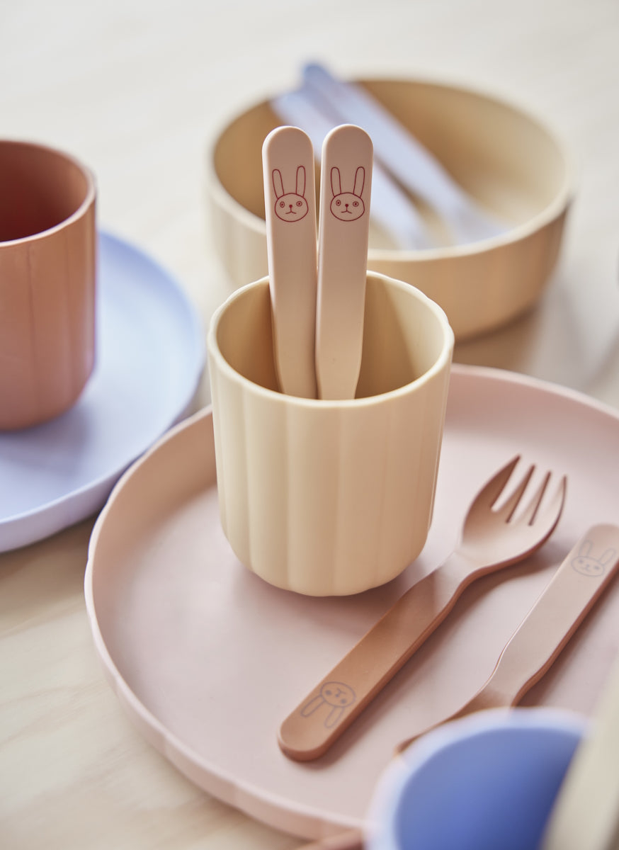 Discover a colourful range of dinnerware for kids. The Pullo dinnerware series is made from dishwasher safe biodegradable and eco-friendly material designed in fresh, playful colours. The Pullo Cup is perfect for serving your littles ones’ favourite cold drinks. Mix and match colours and serve joy to the table when presenting little ones with food. Sold in a set of 2. Measures Ø7cm x H8cm.
