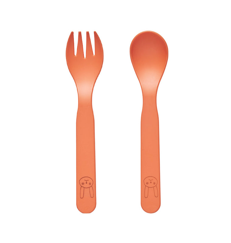 Pullo Cutlery is made from dishwashers safe and eco-friendly PLA (polyester made from plant starch) and has rounded shapes for toddlers to safely practice eating on their own. The cutlery is well dimensioned for little hands to use. When the cutlery is worn out it can be sorted as hard plastic and recycled to produce new products for everyday life. Pullo cutlery set has a spoon and a fork. The cutlery has a matt silky surface and matches the rest of the Pullo collection. Measures L13.5cm W2.8cm.