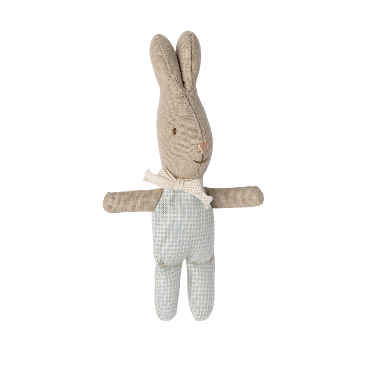 The smallest member of the Maileg rabbit family. This rabbit is perfect for the Babysitter, Stroller or Nursery Table. Measures 11cm in length.