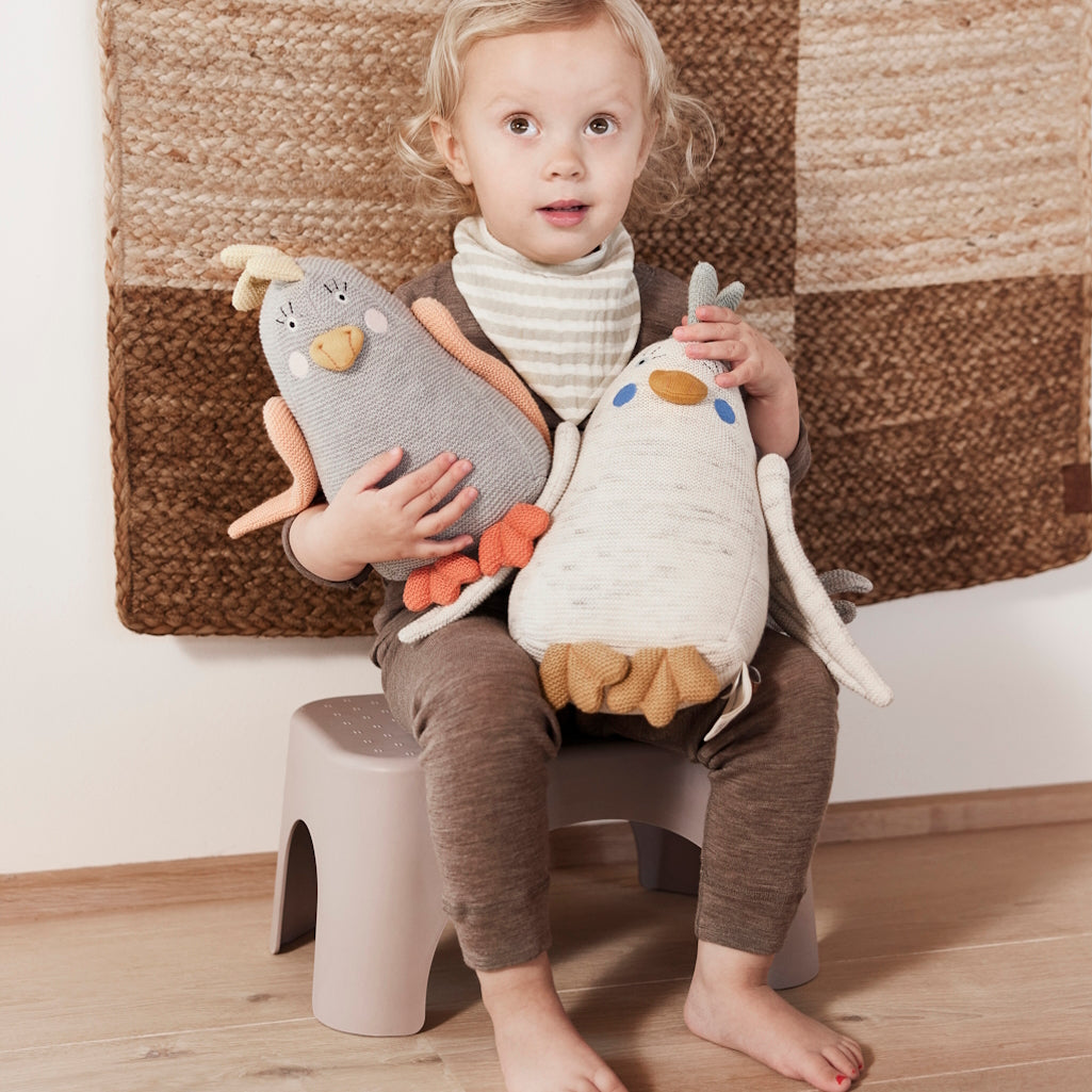 The Rabbit Step Stool is both functional and whimsical. Crafted from durable bamboo fiber, this step stool can support a maximum weight of 100kg. Featuring an anti-slip surface adorned with small rabbit heads, a signature from the OYOY Mini logo, it ensures safety with a touch of charm. The practical hole in the middle facilitates easy movement for both kids and adults. Versatile and stackable, this stool can be used in all rooms. Don't forget the friendly reminder: do not jump! Rubber feet provide stability, making the Rabbit Step Stool a delightful and practical accent for your home. Measures H18cm x L36cm x W23cm.