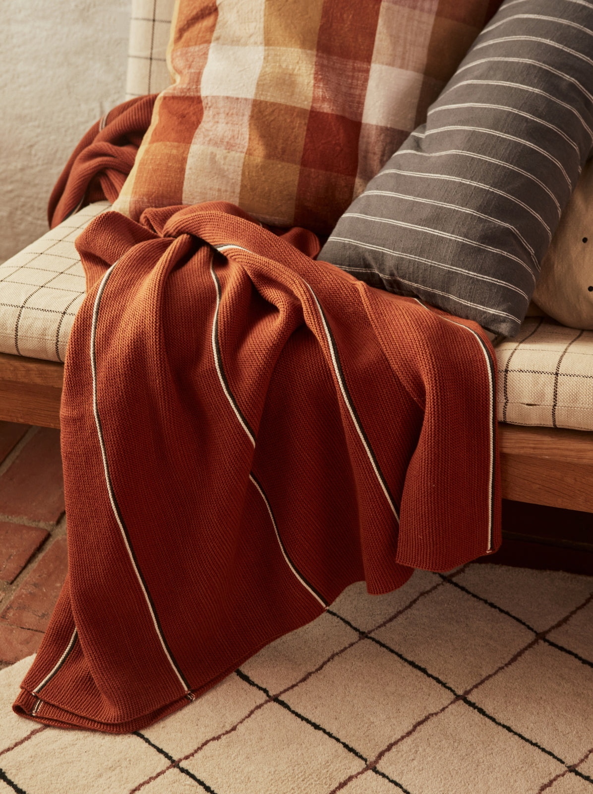 The Rivi Blanket is made of the softest organic cotton and it's design gives it a modern expression. The blanket looks beautiful over the sofa when not in use, and will keep you warm on cold evenings. Measures 184cm (L) x 134cm (W).
