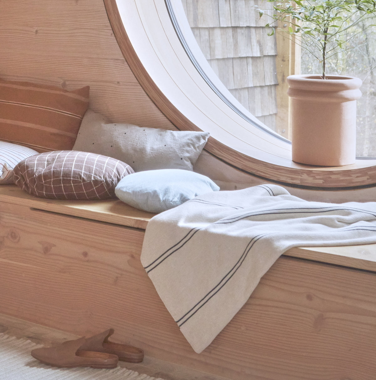 The Rivi Blanket is made of the softest organic cotton and it's design gives it a modern expression. The blanket looks beautiful over the sofa when not in use, and will keep you warm on cold evenings. Measures 184cm (L) x 134cm (W).