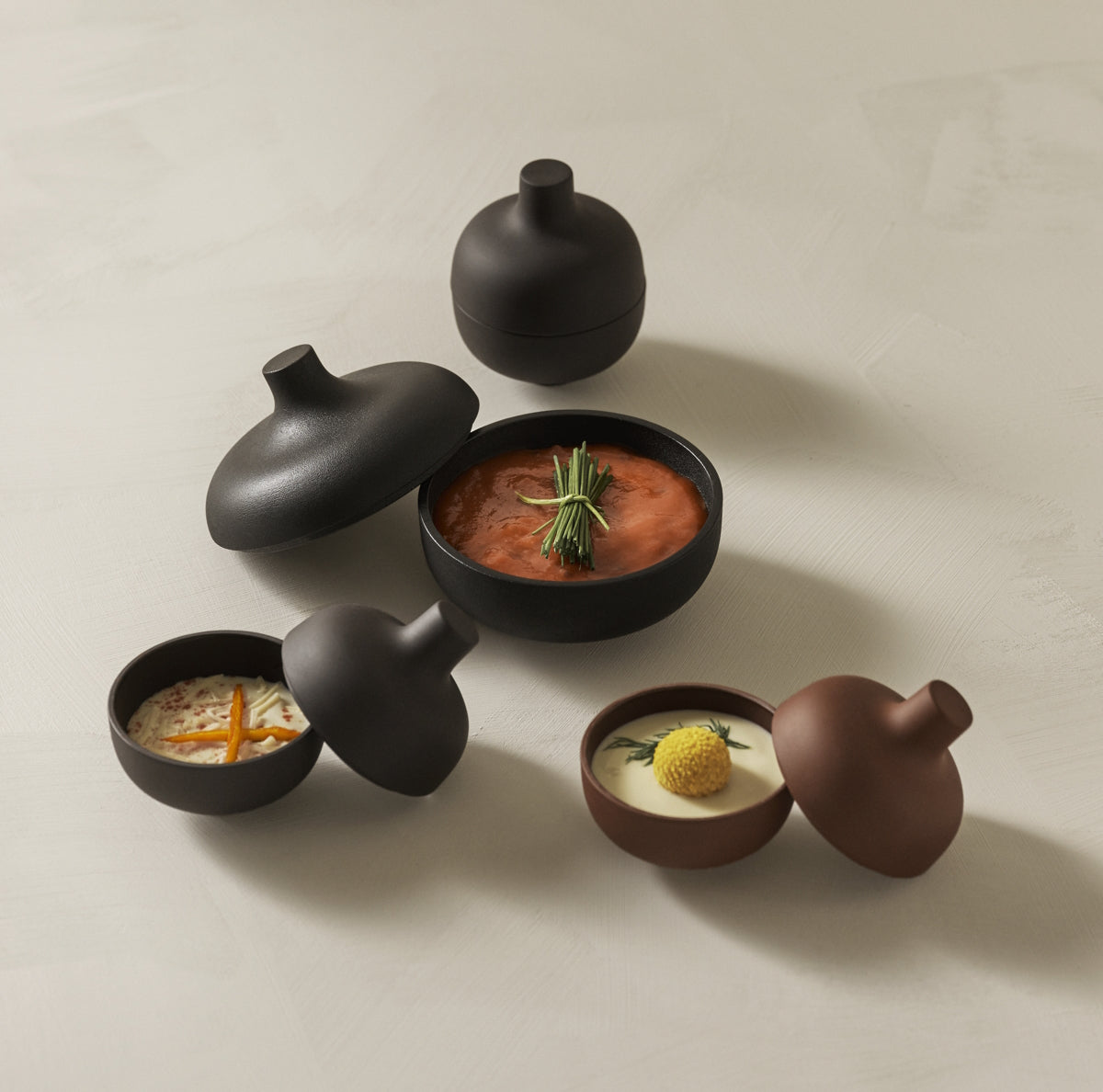 Lift the lid to present flavor and fragrances retained within along with vitamins and healthy nutrients. Glazed on the inside, raw but softly polished on the exterior. The stoneware is dishwasher, microwave and oven safe. Measures 10.2cm (H) x 8.2cm (Dia).