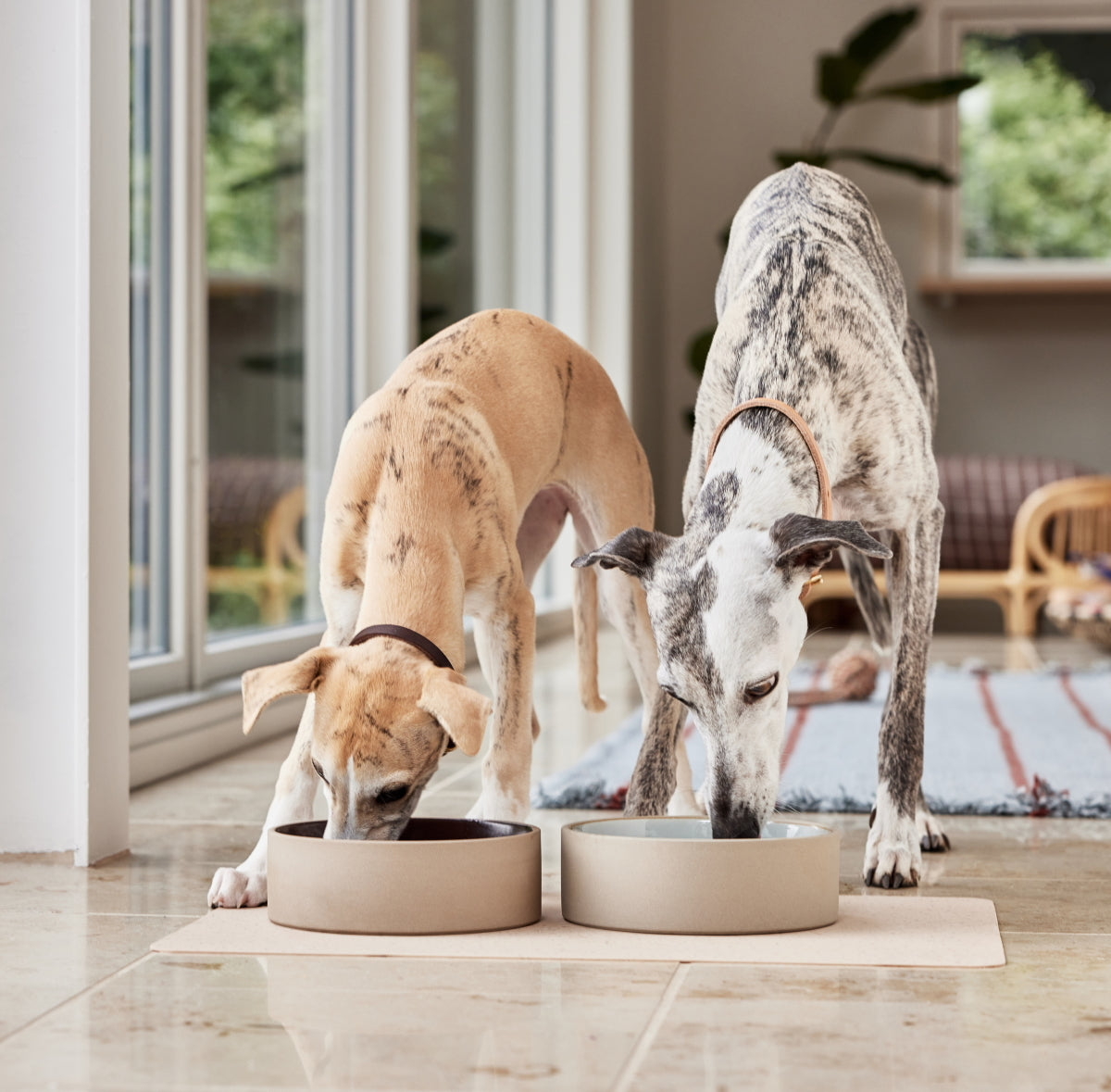 A dog bowl that will blend in with your homes' aesthetic. Made of ceramic with a reactive glaze. Measures 19.5cm in diameter and 6.5cm in depth. Capacity is 1.5L.