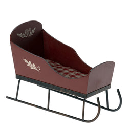 A hand-painted sleigh with a soft mattress that will keep your Maileg Mini Pixy passengers comfortable during the ride over Christmas. Measures H12cm x W8cm.
