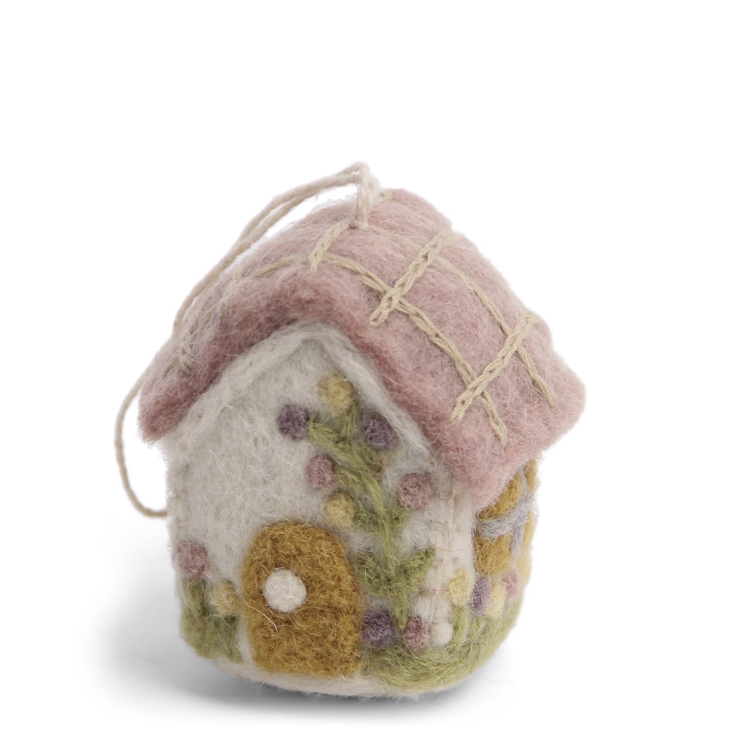 Handmade felted hanging or sitting decoration measuring 6cm x 3cm.