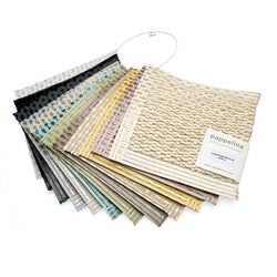 The Pappelina SVEA Woven Sample Set features 12 colour combinations mounted on a metal ring, making it easy to display on ladders for in-store presentation.