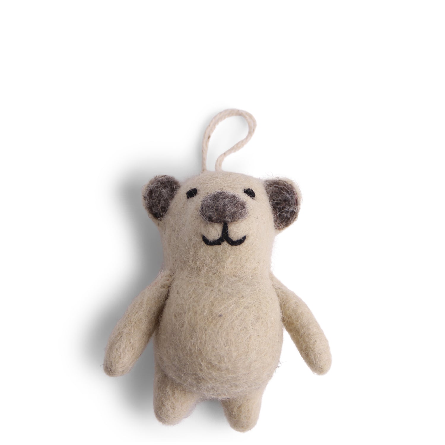 Handmade felted hanging decoration measuring 7.5cm in length.