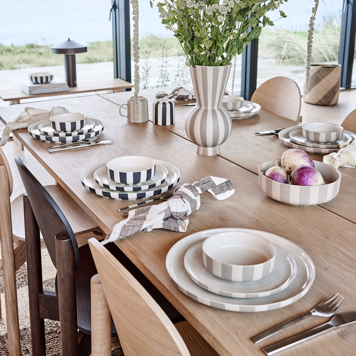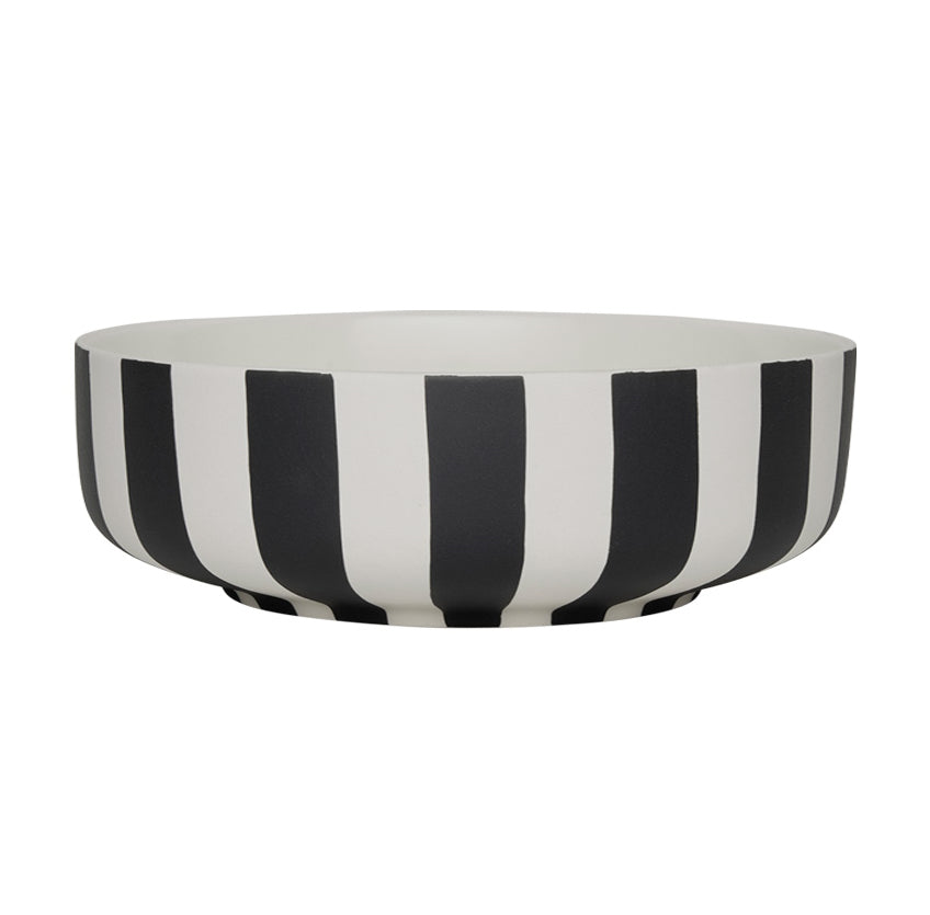 The Toppu Bowl is a cherished addition to the Toppu Family and a recognized OYOY classic. Handmade with precision, each stripe is carefully painted by a team of highly skilled women, ensuring a collector's item with a unique touch. It takes a steady hand to create these stripes, and the same team crafts all the Toppu items for consistency. Mix and match with the rest of the Toppu Collection or your existing dinnerware, creating a personalized dining experience with every use. Measures Ø20cm x H7cm.