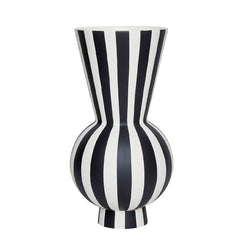 The Toppu Round Vase is a cherished addition to the Toppu Family and an OYOY classic. Handmade with precision, a team of highly skilled women delicately paints each stripe, showcasing their expertise. The same dedicated team crafts all the Toppu items, ensuring consistency in craftsmanship. The vase's thoughtful design not only adds a touch of elegance but also ensures that flowers stand beautifully, making it a perfect blend of form and function. Measures Ø14.5cm x H28cm.