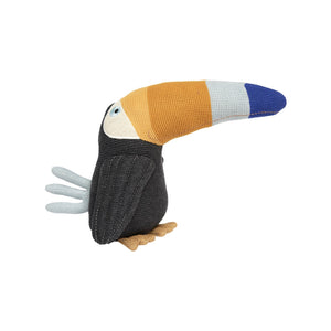 The Toucan Rug is a cozy and playful addition to your child's space, designed to keep small feet warm. This rug is a fun and vibrant accent for the kids' room, adding a touch of whimsy to their environment. Crafted from a blend of 80% wool and 20% cotton, it offers both softness and durability. To maintain its charm, it is recommended to vacuum and spot clean only. Measures L90cm x W70cm.