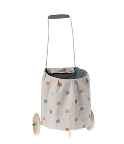 A trolley is a great way to carry your soft friends and toys around. The trolley is covered with linen fabric that has a soft coating which is easy to take off and wash. Measures 56cm (H) x 28cm (W).