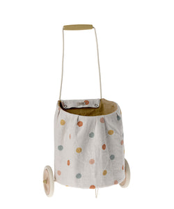 A trolley is a great way to carry your soft friends and toys around. The trolley is covered with linen fabric that has a soft coating which is easy to take off and wash. Measures 56cm (H) x 28cm (W).