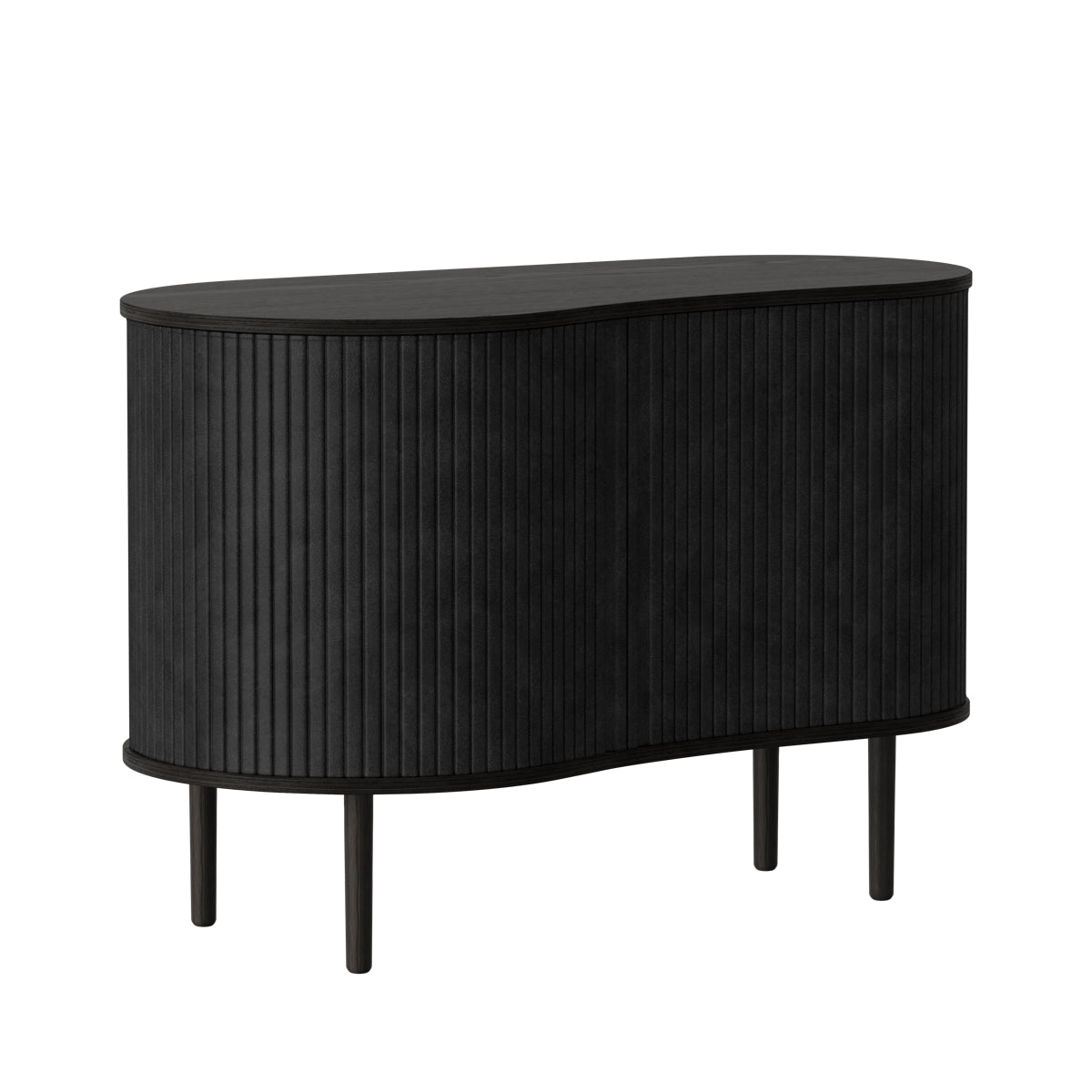 Available in oak, dark oak and black oak with tambour doors in carefully selected colours of the 100% recycled Horizons textile. The tambour doors are interchangeable, meaning that you can change them easily yourself and add new life to the design without having to buy an entirely new furniture piece, saving the world resources.
