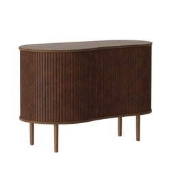 Available in oak, dark oak and black oak with tambour doors in carefully selected colours of the 100% recycled Horizons textile. The tambour doors are interchangeable, meaning that you can change them easily yourself and add new life to the design without having to buy an entirely new furniture piece, saving the world resources.
