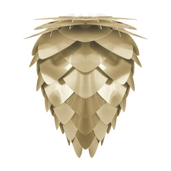 Inspired by nature and with it's characteristic organic, triangular shaped blades, the Conia lamps cast a warm and glarefree ambient light, making it an artistic piece to illuminate that special spot in a home. The stylish metallic colour confers a glamourous edge to the design and tells a “story” of authenticity and timelessness. Available in a mini and medium size, the Conia lamp comes in a white, copper and brushed brass version. These could be used either as pendants, floor lamps, or table lamps, making it a versatile design piece. Because the light bulb is not visible from any angle, these stylish lampshades are perfect for any height and any place in a home.