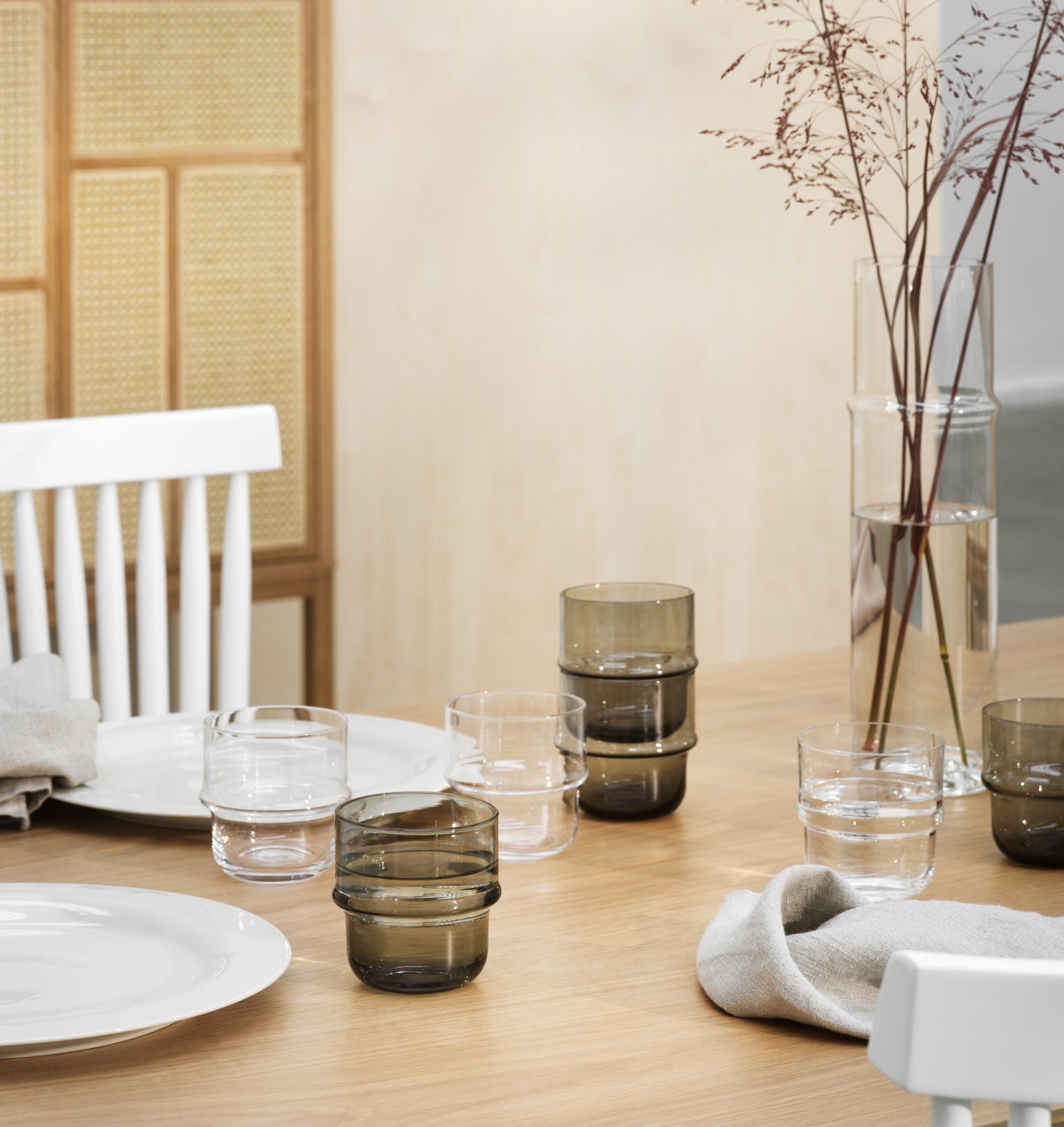 Drinking glasses are very emotive products in that they meet with people’s hands, and great effort has been put into finding the right shape and feeling for this meeting. The classic shape has been adorned with a ripple on the side. It’s a wave that catches the fingers and plays with the hand, while allowing practical stacking as the glasses never get stuck together. Unda means wave in Latin. Capacity is 250ml. Measures 8cm (Dia) x 8.3cm (H). Dishwasher safe mouth-blown glass.