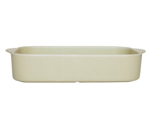 The Yuka Oven Dish is handcrafted with a modern aesthetic and classic design, this oven dish is made of 100% stoneware, resilient up to 280 degrees Celsius. The reactive glaze adds a unique touch, with colours subtly varying on each piece. All parts are handmade, and finish may vary due to the exposure to heat in the oven. Measures H7.5cm x L40cm x W22cm.