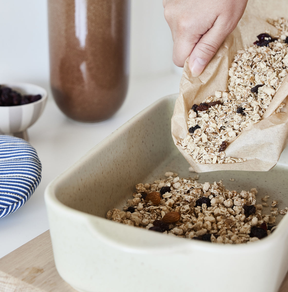 The Yuka Oven Dish is handcrafted with a modern aesthetic and classic design, this oven dish is made of 100% stoneware, resilient up to 280 degrees Celsius. The reactive glaze adds a unique touch, with colours subtly varying on each piece. All parts are handmade, and finish may vary due to the exposure to heat in the oven. Measures H7cm x L32cm x W17.5cm.