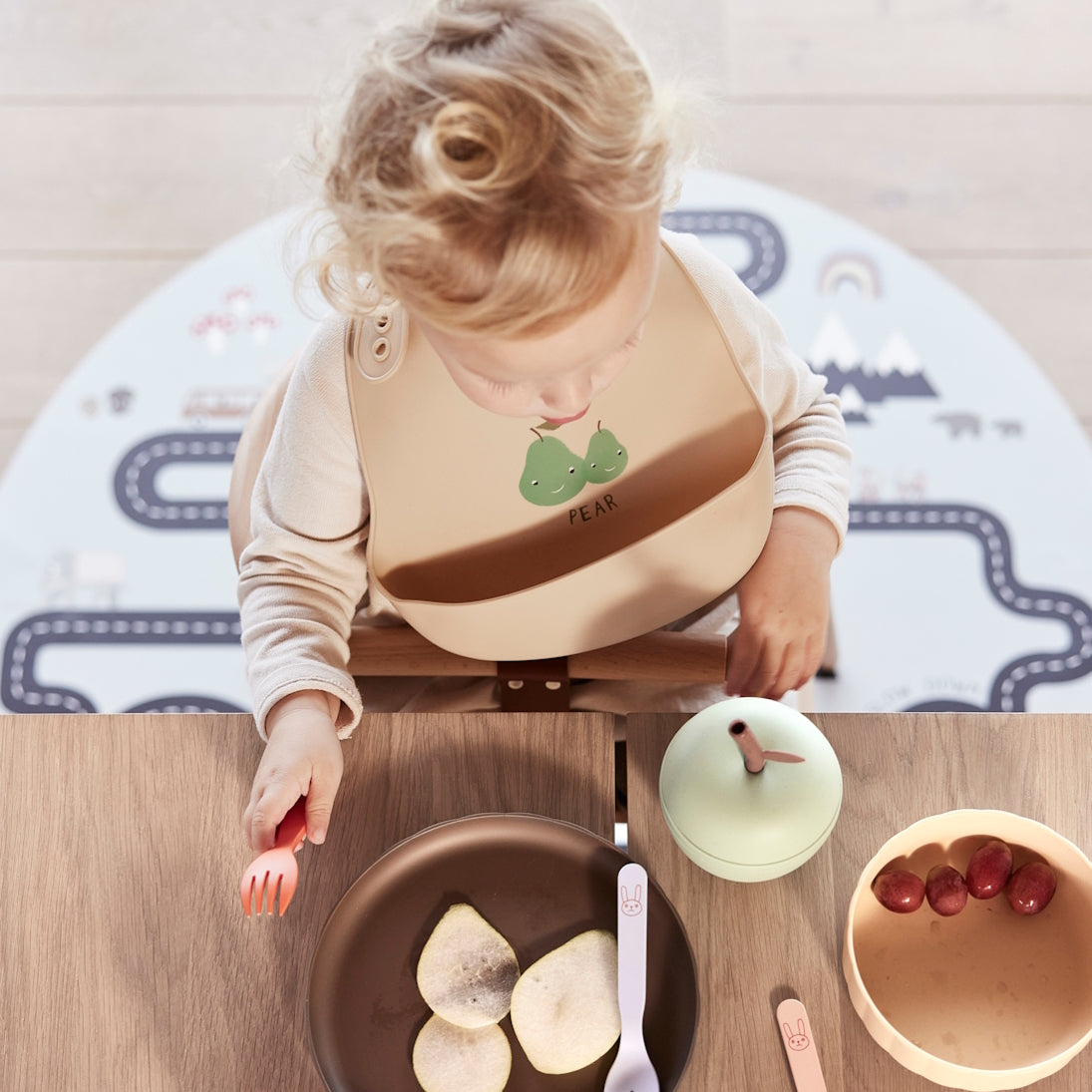 The Yummy Silicone Bib is a practical solution to mealtime messes. Featuring a convenient neck closure, this bib is designed to gather food and liquids, preventing spills and stains on clothes. Adorned with well-known Yummy characters, these bibs are crafted from 100% printed silicone, ensuring both durability, delightful designs and making cleanup a breeze with a simple wash in warm soapy water. Measures L27cm x W19cm.